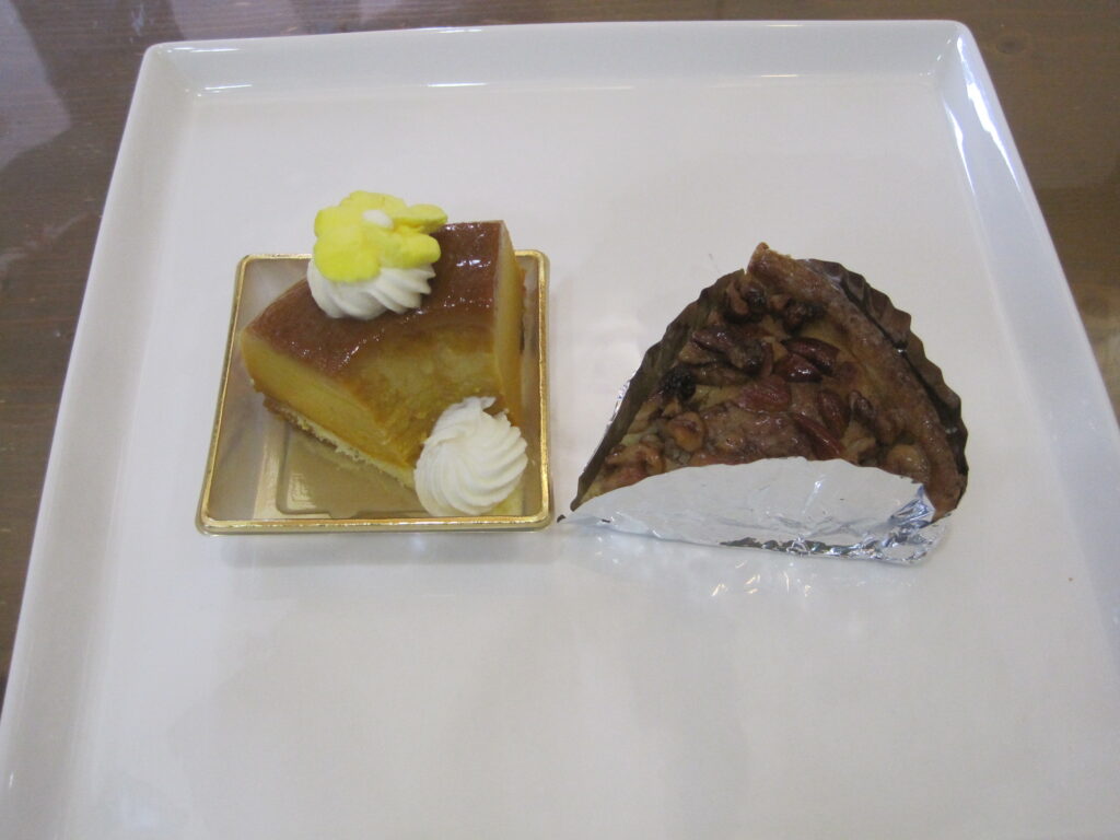 沼津ケーキ屋 ひなたぼっこ 今日のサービスケーキ”ホームページ見たよ(スマホの画面を見せていただいてもいいです)”と言ってくれたお客様で、今日のケーキ「かぼちゃのプリン と クルミのタルト」 をお買い上げの場合、今日のケーキ2種類、それぞれ1個につき50円引きとさせていただきます。何個でもいいで~す。今日のケーキは、毎日変わります