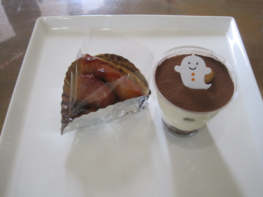 沼津ケーキ屋 ひなたぼっこ 今日のサービスケーキ”ホームページ見たよ(スマホの画面を見せていただいてもいいです)”と言ってくれたお客様で、今日のケーキ「タルトタタン と ティラミス」 をお買い上げの場合、今日のケーキ2種類、それぞれ1個につき50円引きとさせていただきます。何個でもいいで~す。今日のケーキは、毎日変わります。