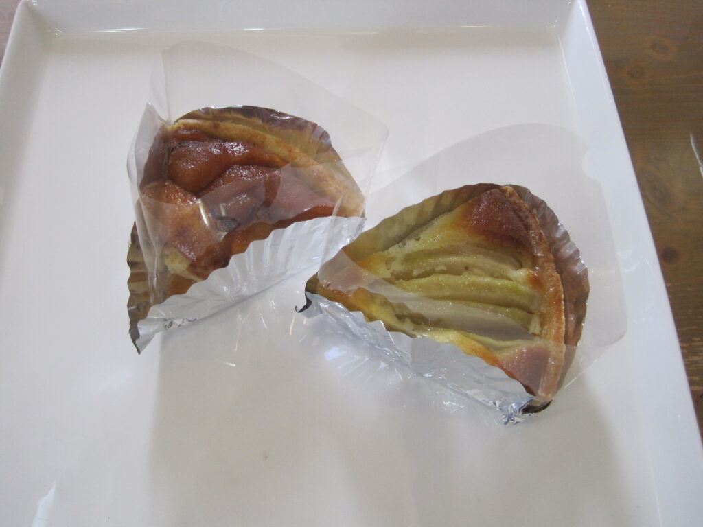 沼津ケーキ屋 ひなたぼっこ 今日のサービスケーキ”ホームページ見たよ(スマホの画面を見せていただいてもいいです)”と言ってくれたお客様で、今日のケーキ「ラフランスのタルト と タルトタタン」 をお買い上げの場合、今日のケーキ2種類、それぞれ1個につき50円引きとさせていただきます。何個でもいいで~す。今日のケーキは、毎日変わります。
