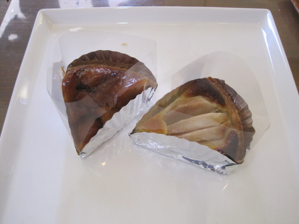 沼津ケーキ屋 ひなたぼっこ 今日のサービスケーキ”ホームページ見たよ(スマホの画面を見せていただいてもいいです)”と言ってくれたお客様で、今日のケーキ「タルトタタン と ラフランスのタルト」 をお買い上げの場合、今日のケーキ2種類、それぞれ1個につき50円引きとさせていただきます。何個でもいいで~す。今日のケーキは、毎日変わります。