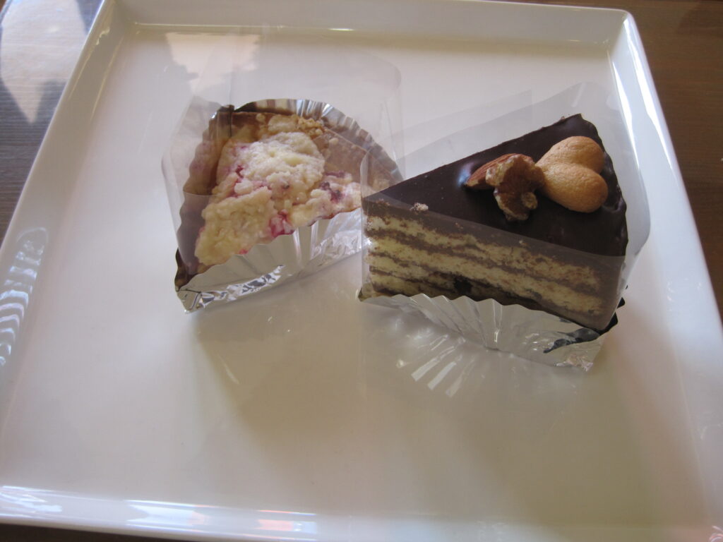 沼津ケーキ屋 ひなたぼっこ 今日のサービスケーキ”ホームページ見たよ(スマホの画面を見せていただいてもいいです)”と言ってくれたお客様で、今日のケーキ「桃とキイチゴのタルト と チョコレートケーキ」 をお買い上げの場合、今日のケーキ2種類、それぞれ1個につき50円引きとさせていただきます。何個でもいいで~す。今日のケーキは、毎日変わります。