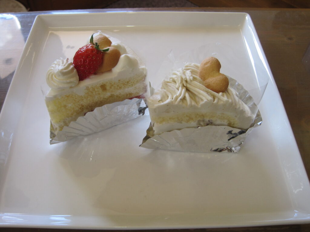 沼津ケーキ屋 ひなたぼっこ 今日のサービスケーキ”ホームページ見たよ(スマホの画面を見せていただいてもいいです)”と言ってくれたお客様で、今日のケーキ「イチゴのショートケーキ と モンブランパイ」 をお買い上げの場合、今日のケーキ2種類、それぞれ1個につき50円引きとさせていただきます。何個でもいいで~す。今日のケーキは、毎日変わります。