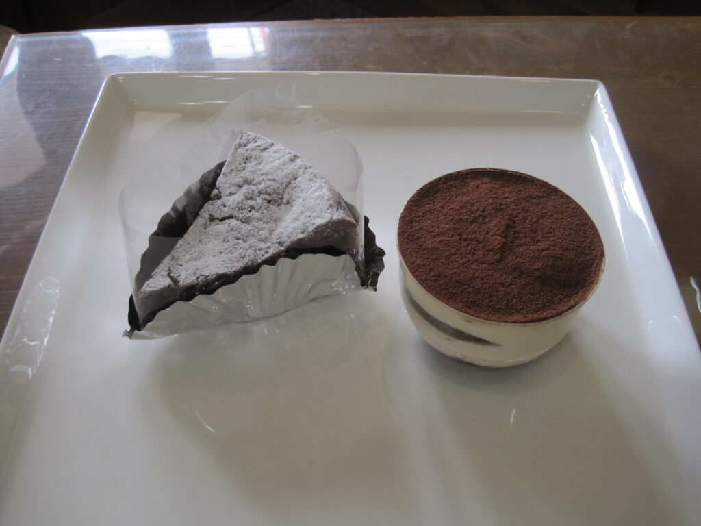 沼津ケーキ屋 ひなたぼっこ 今日のサービスケーキ”ホームページ見たよ(スマホの画面を見せていただいてもいいです)”と言ってくれたお客様で、今日のケーキ「ティラミス と ガトーショコラ」 をお買い上げの場合、今日のケーキ2種類、それぞれ1個につき50円引きとさせていただきます。何個でもいいで~す。今日のケーキは、毎日変わります。