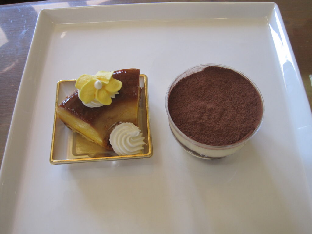 沼津ケーキ屋 ひなたぼっこ 今日のサービスケーキ”ホームページ見たよ(スマホの画面を見せていただいてもいいです)”と言ってくれたお客様で、今日のケーキ「かぼちゃのプリン と ティラミス」 をお買い上げの場合、今日のケーキ2種類、それぞれ1個につき50円引きとさせていただきます。何個でもいいで~す。今日のケーキは、毎日変わります。