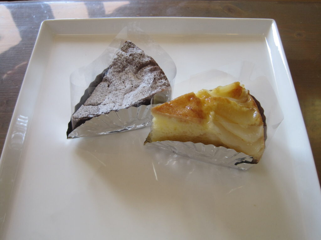 沼津ケーキ屋 ひなたぼっこ 今日のサービスケーキ”ホームページ見たよ(スマホの画面を見せていただいてもいいです)”と言ってくれたお客様で、今日のケーキ「洋ナシのケーキ と ガトーショコラ」 をお買い上げの場合、今日のケーキ2種類、それぞれ1個につき50円引きとさせていただきます。何個でもいいで~す。今日のケーキは、毎日変わります。