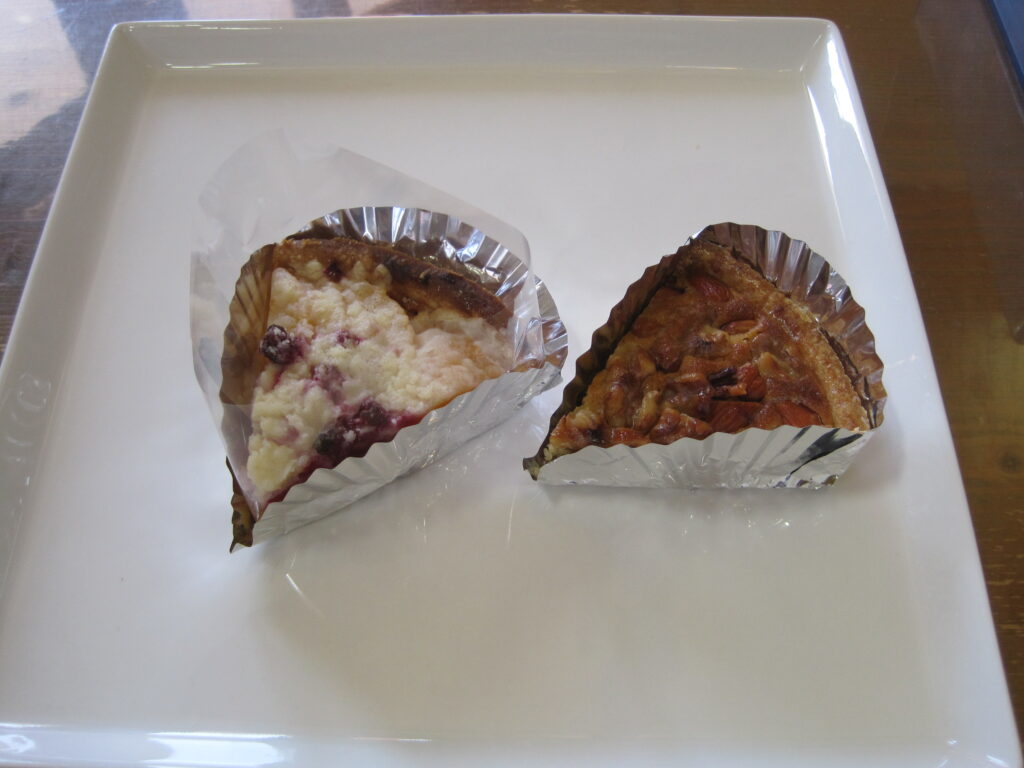 沼津ケーキ屋 ひなたぼっこ 今日のサービスケーキ”ホームページ見たよ(スマホの画面を見せていただいてもいいです)”と言ってくれたお客様で、今日のケーキ「クルミのタルト と 桃とキイチゴのタルト 」 をお買い上げの場合、今日のケーキ2種類、それぞれ1個につき50円引きとさせていただきます。何個でもいいで~す。今日のケーキは、毎日変わります。
