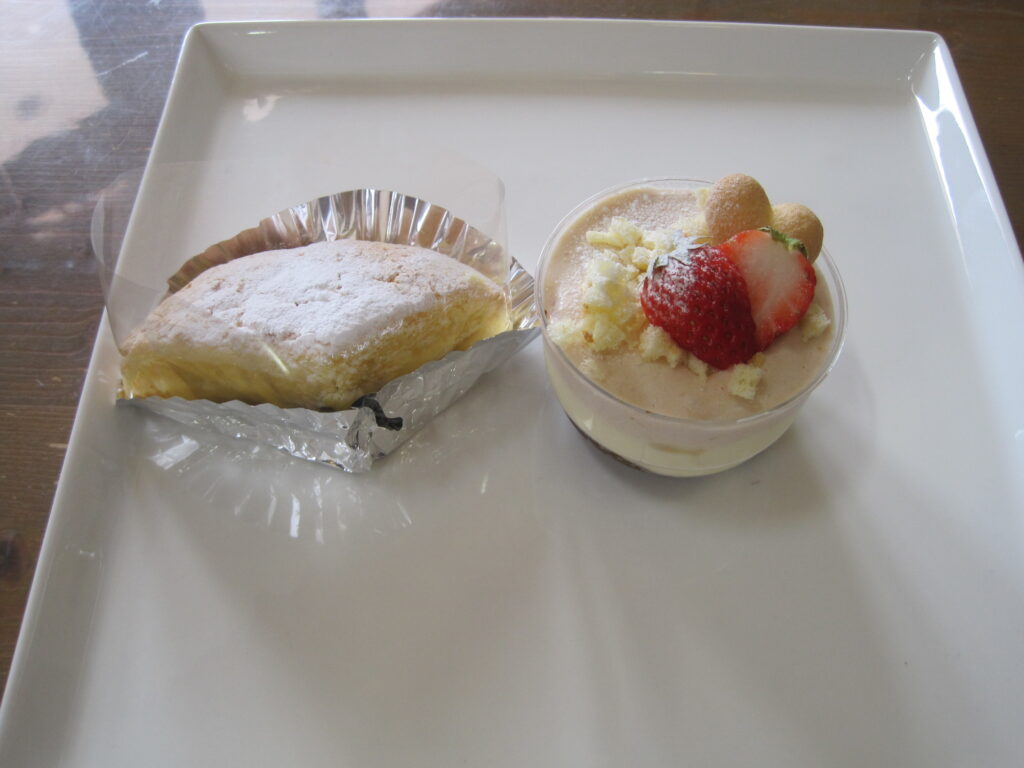 沼津ケーキ屋 ひなたぼっこ 今日のサービスケーキ”ホームページ見たよ(スマホの画面を見せていただいてもいいです)”と言ってくれたお客様で、今日のケーキ「イチゴティラミス と バナナのクリームオムレット」 をお買い上げの場合、今日のケーキ2種類、それぞれ1個につき50円引きとさせていただきます。何個でもいいで~す。今日のケーキは、毎日変わります。