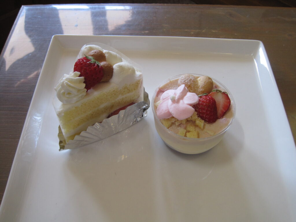 沼津ケーキ屋 ひなたぼっこ 今日のサービスケーキ”ホームページ見たよ(スマホの画面を見せていただいてもいいです)”と言ってくれたお客様で、今日のケーキ「イチゴティラミス と イチゴのショートケーキ」 をお買い上げの場合、今日のケーキ2種類、それぞれ1個につき50円引きとさせていただきます。何個でもいいで~す。今日のケーキは、毎日変わります。