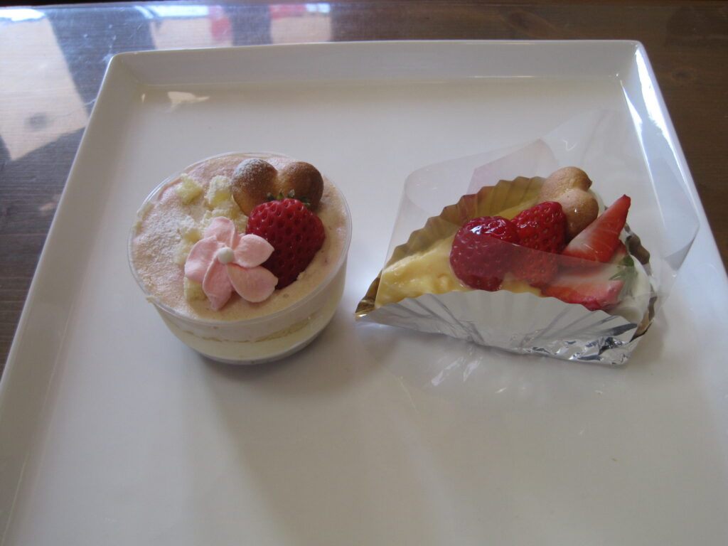 沼津ケーキ屋 ひなたぼっこ 今日のサービスケーキ”ホームページ見たよ(スマホの画面を見せていただいてもいいです)”と言ってくれたお客様で、今日のケーキ「イチゴティラミス と イチゴタルト」 をお買い上げの場合、今日のケーキ2種類、それぞれ1個につき50円引きとさせていただきます。何個でもいいで~す。今日のケーキは、毎日変わります。
